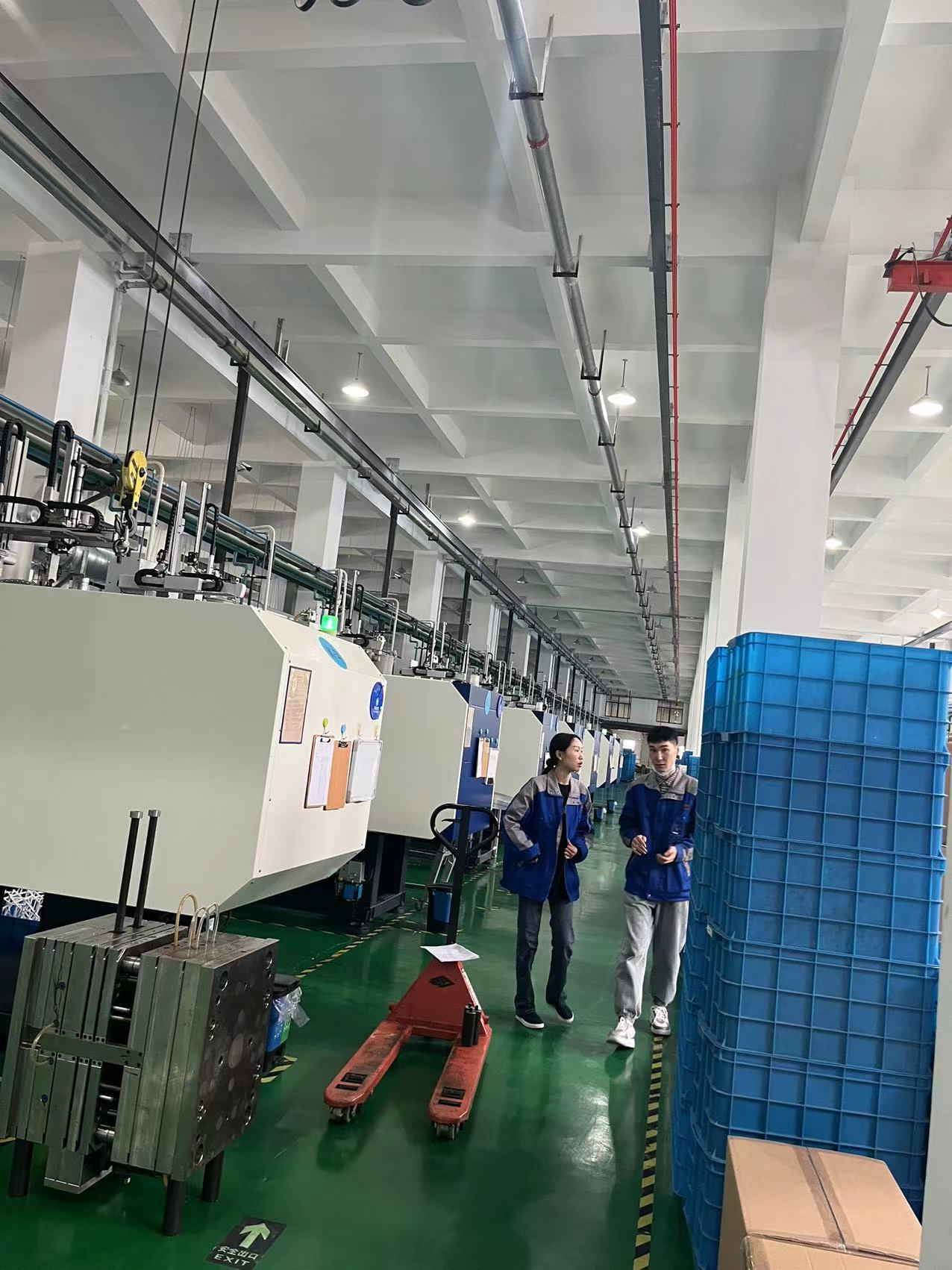 A clamping unit exerts force against the two mold halves to keep them closed against the high pressure of the injection. Once the plastic has cooled and hardened sufficiently, usually within seconds, the mold opens and the solid plastic part is ejected out.